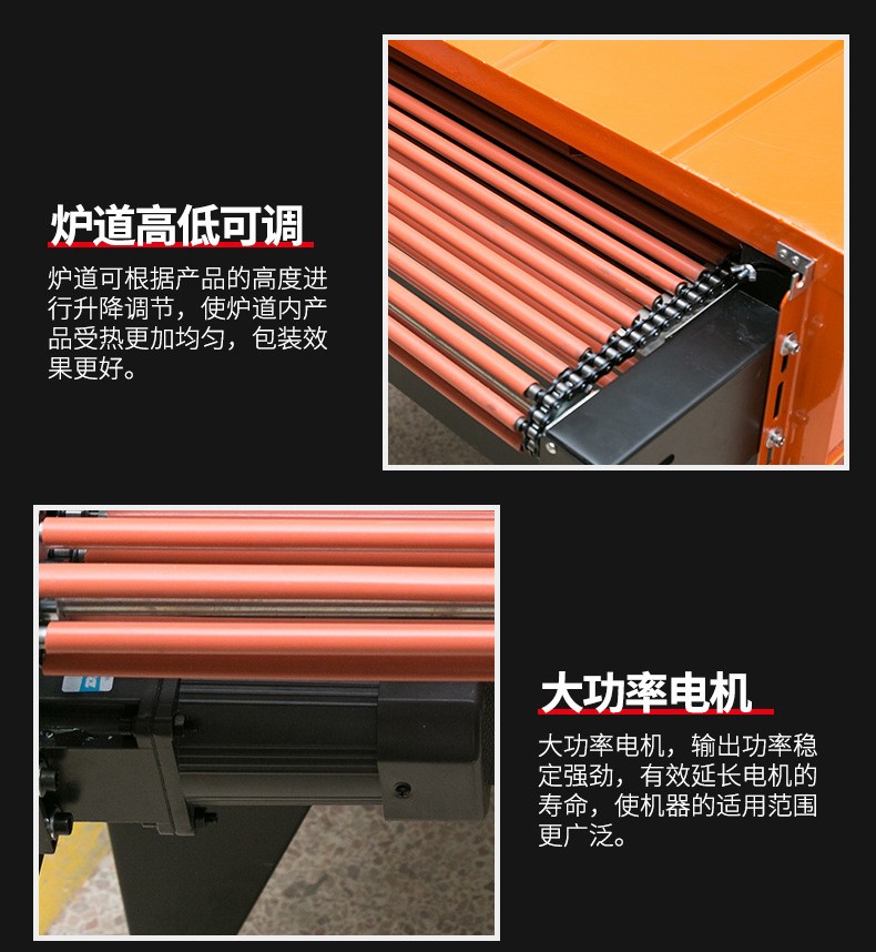 - 自動化程度高助力效率提升:這類機器通常具備較高的自動化水平,能夠與上下游的生產線設備無縫銜接。產品可以通過輸送帶自動進入收縮機,在經過熱收縮包裝后又自動輸出,整個過程無需人工過多干預。而且,其自動化操作還可以通過預設的程序進行精準控制,如根據產品的尺寸和包裝要求自動調整噴氣強度和輸送速度,進一步提高生產效率。