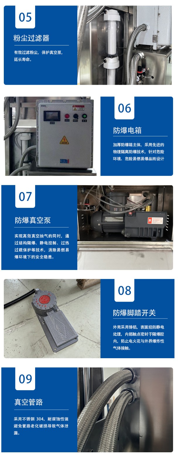 - 防爆性能優越:采用物理隔離防爆技術,嚴格選用防爆達標元件,電器箱、真空泵、熱封條等都經過特殊的防爆處理,能有效防止在操作過程中產生火花,避免爆炸等危險情況的發生2。